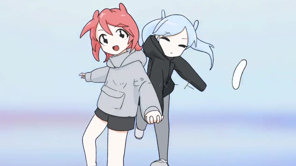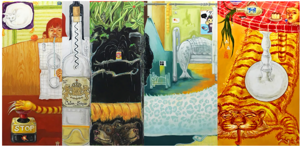 Interdudeのイメージの起点になるのは米澤 柊のループアニメーションに現れる「オバケ」のイメージです。それはデジタルな線でありながら、揺れ動き、滲んで、残像を持ち、どこか湿り気を持った生の気配を運んでいます。安齋茉由の描く、ルーズでありながら決定的な一瞬を射抜くシャープな線は、形が固定される直前の、震えるような中間状態をキャンバスに留めています。松田ハルのデジタル表現もまた、仮想と現実のどちらにも属さない「どこでもない場所」を作り出し、私たちの視覚を宙吊りにします。キャラクター絵画の極北、ペロンミの描く像は、キャラクター性が希薄で、イメージがイメージとして生成される途上の、自由な空気を纏っているように見えます。